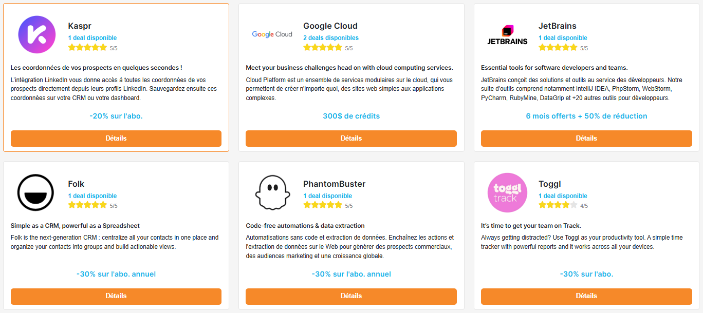 Rejoignez-nous pour bénéficier de centaines de codes promos et réductions exclusives sur les meilleurs logiciels SaaS, outils et services en ligne spécialement dédiés aux freelances.